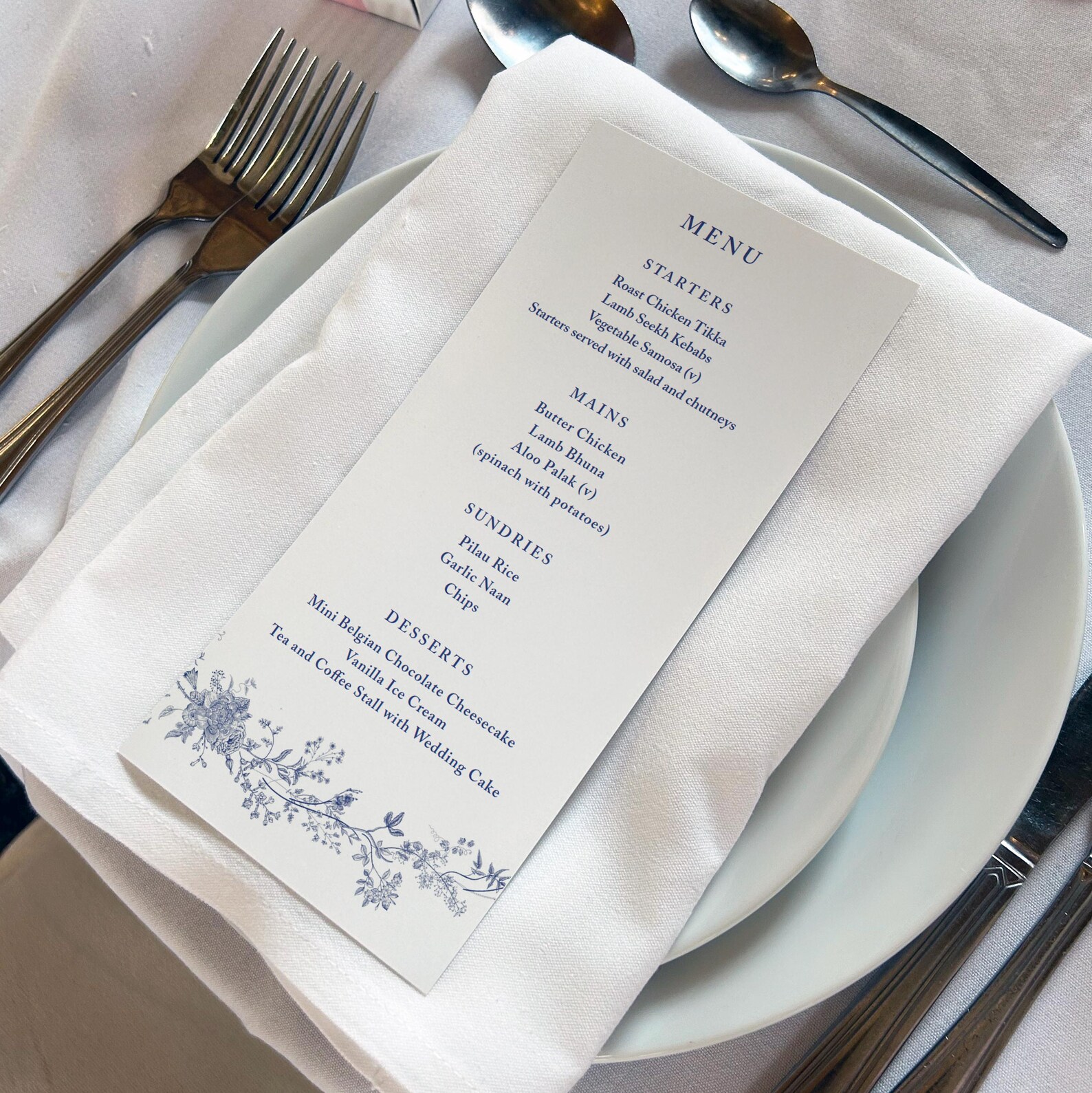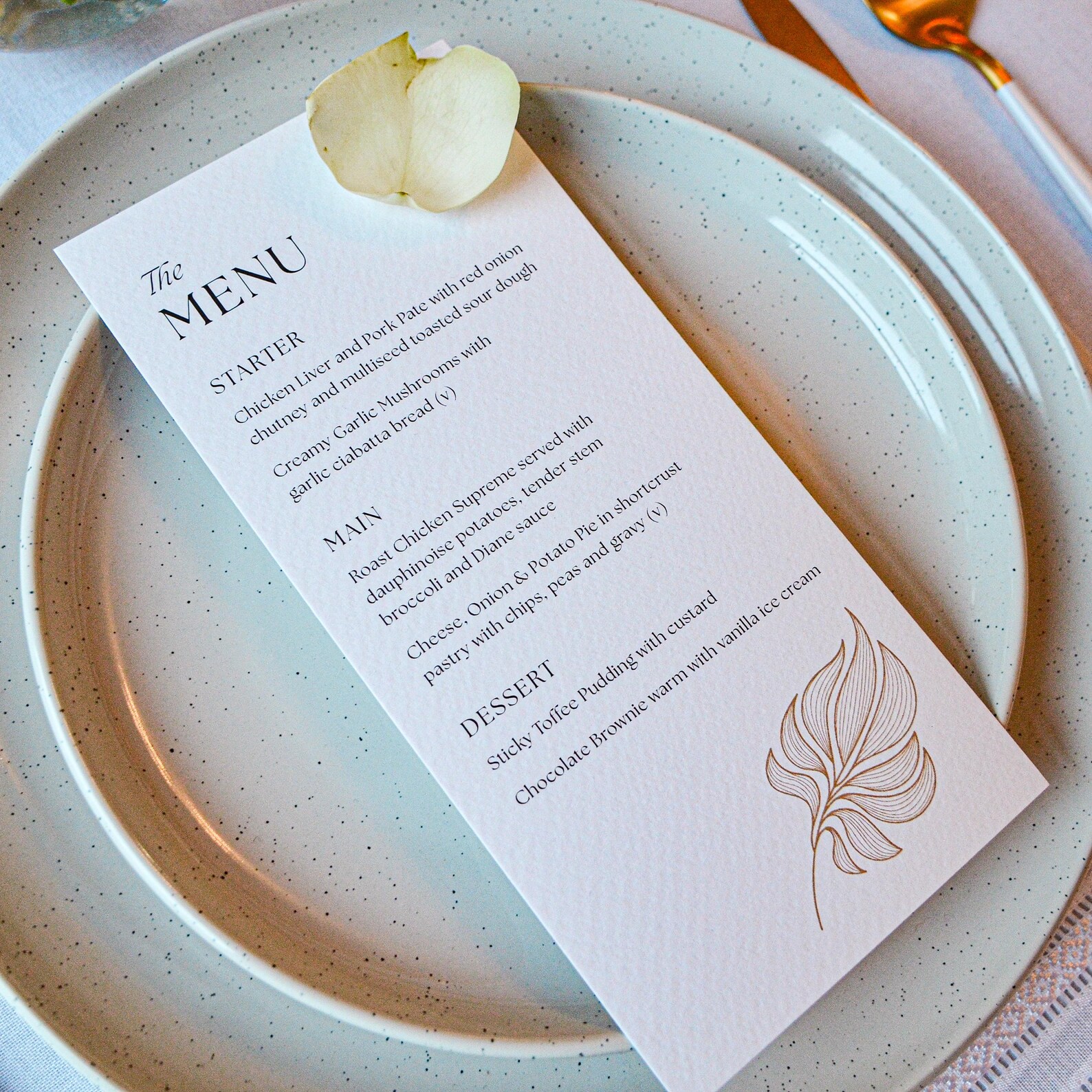 Enhance your event’s dining experience with our Personalised Wedding Table Stationery. These are perfect for adding a touch of elegance to your table settings. Printed on 300gsm luxury white, high quality card.